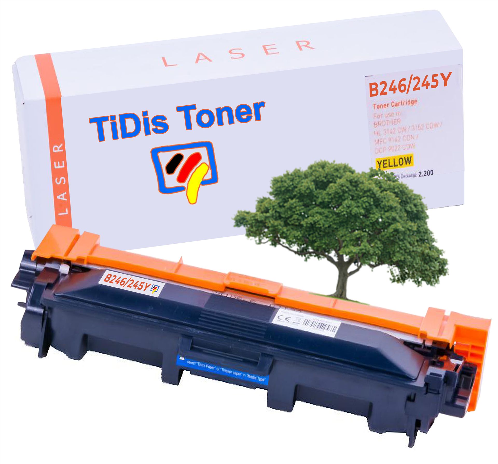 Diese TN241-6 Brother Tonerkartusche Yellow für Drucker von Brother der eingetragenen deutschen Marke TiDis hat eine hoher Qualität und ist annähernd vergleichbar mit der Originalen TN241-6Y von Brother.