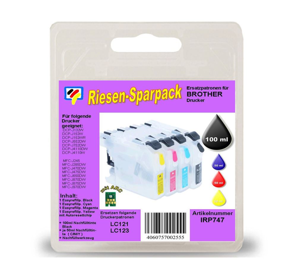 Druckerpatronen Brother LC121 LC123 LC125 LC127 zum einfachen Befüllenmit Autoresetchip