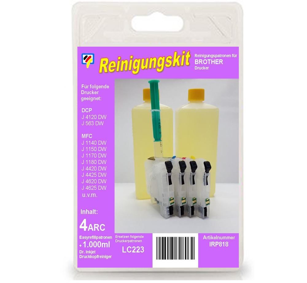 4 Spezialpatronen BCMY 1000mL Düsenreiniger Brother 223