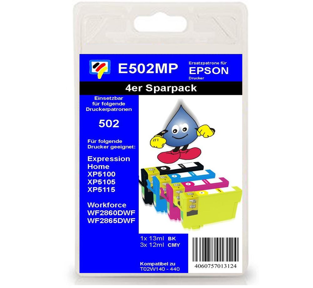 Bei diesen Druckerpatronen Multiset E502MP handelt es sich um neue kompatible Druckerpatronen für Epson Drucker der Modellreihen XP5100, XP5105, Workforce WF2860, WF2865, usw. .