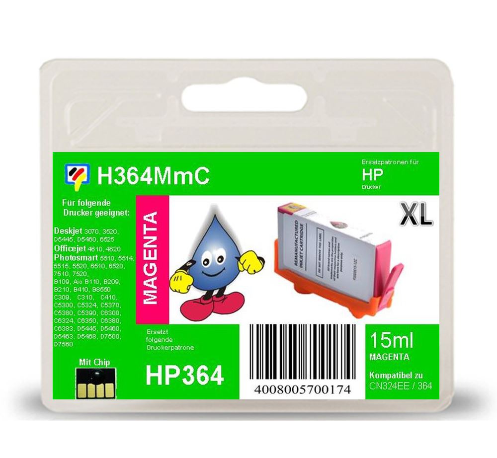 Dieser H364 HP Tintentank Magenta für Drucker von HP der eingetragenen deutschen Marke TiDis hat eine hoher Qualität und ist annähernd vergleichbar mit der Originalen HP364M von HP.