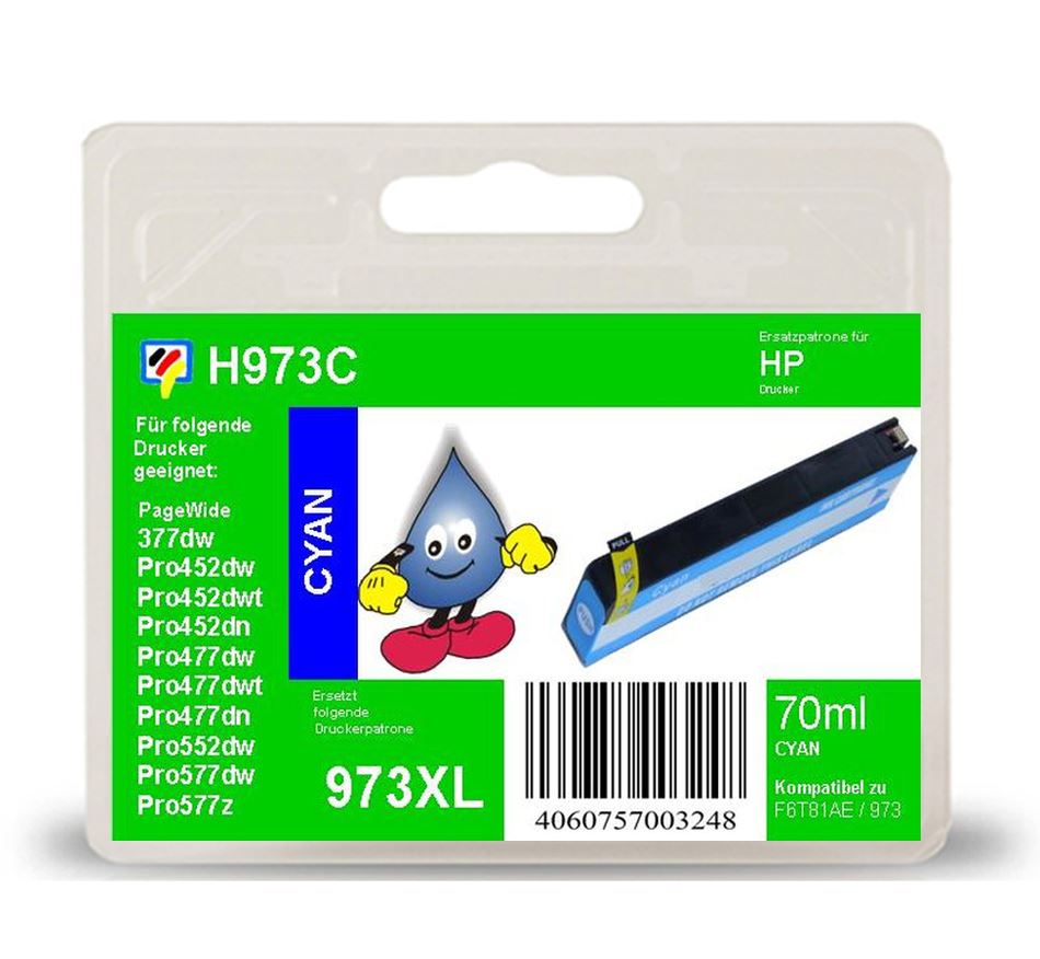 Bei dieser blauen Druckerpatrone HP973 handelt es sich um eine neue kompatible Druckerpatrone für HP Drucker der Modellreihen Pro 450 , 452 , 470 , 477 , 552 , 570 , 577 , usw. .