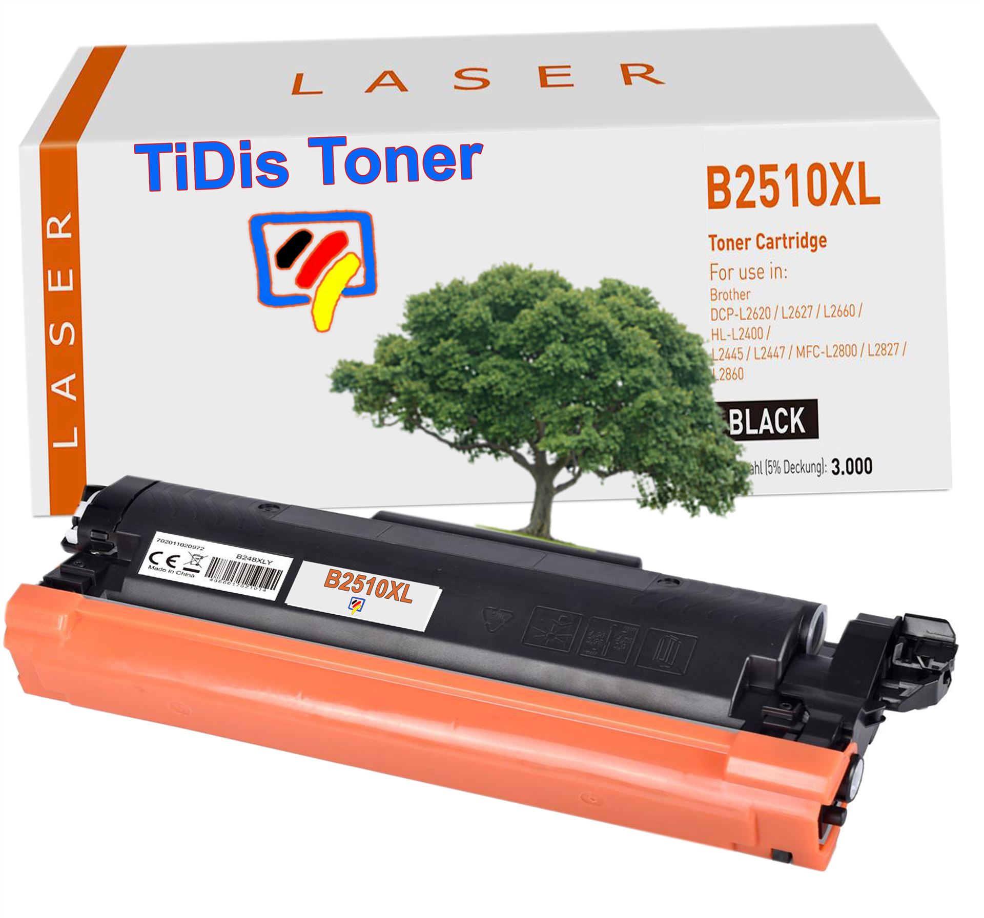 Diese TN2510 Brother Tonerkartusche Black für Drucker von Brother der eingetragenen deutschen Marke TiDis hat eine hoher Qualität und ist annähernd vergleichbar mit der Originalen TN2510 XL von Brother.